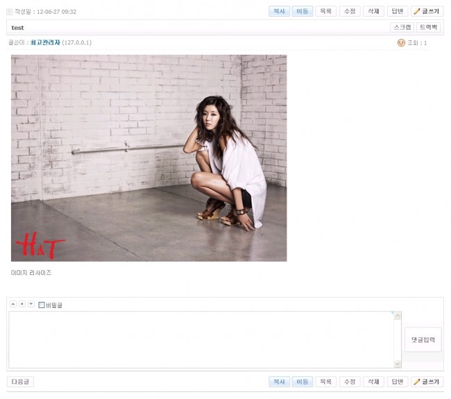 게시판 뷰페이지 이미지 리사이즈 방법 변경첨부파일