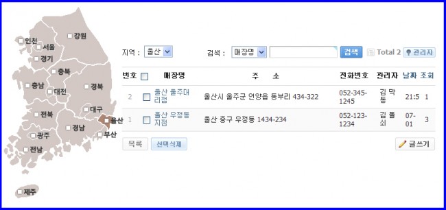 게시판 전국 매장, 지점, 대리점, 전국A/S 안내 게시판(이미지형)첨부파일