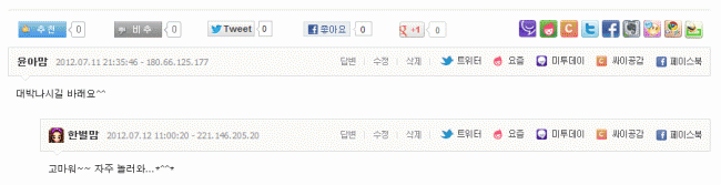 - 트위터 버튼 모양 : https://twitter.com/about/resources/buttons 와 https://dev.twitter.com/docs/tweet-button