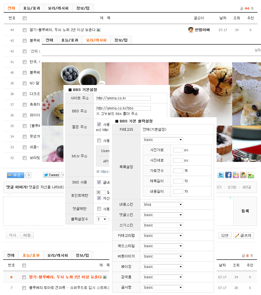 추가설정 에서 BBS 기본설정은 변경되는데