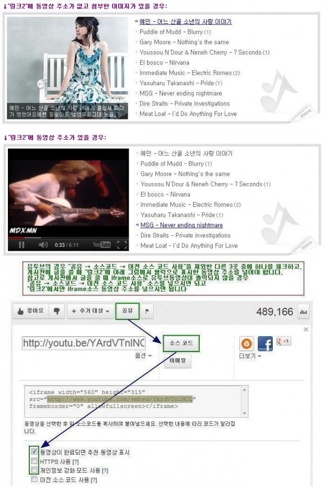 (※ '링크2'에 "공유 → 소스코드 → 이전 소스 코드 사용" 의 동영상 주소를 넣을 경우 다른 게시글의 썸네일 출력에 문제를 일으킬 수 있습니다.)