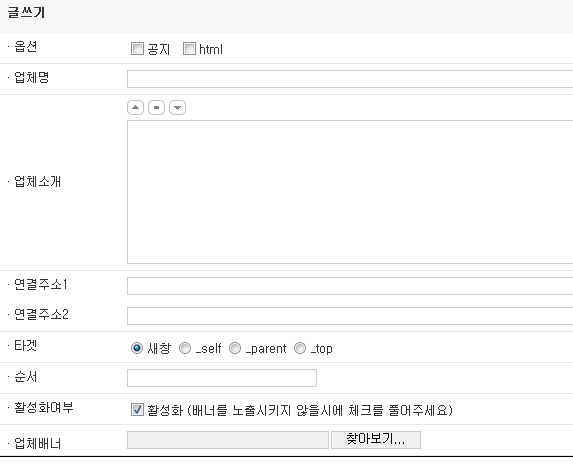 게시판 연동 협력,패밀리사이트 배너 탭 최신글 정보