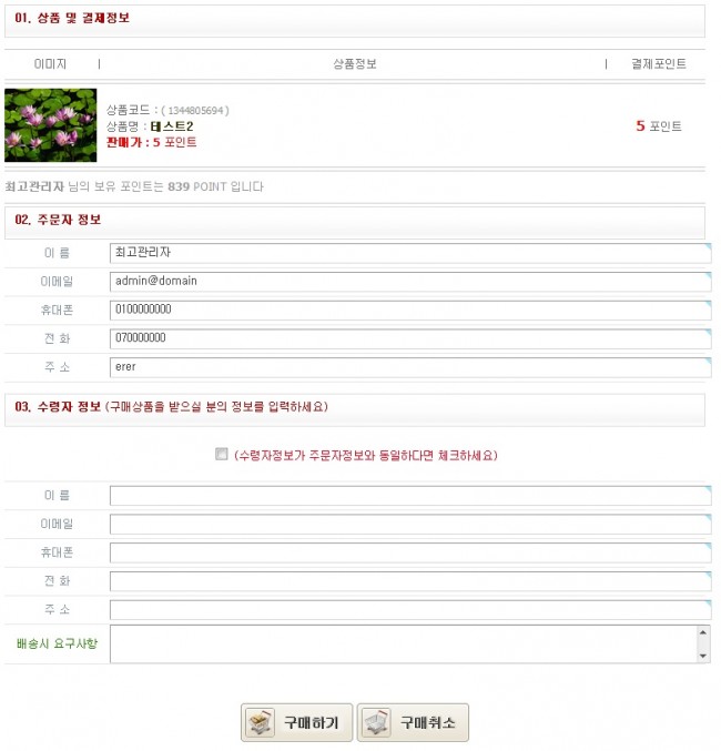 관리자만 구매신청이 된 리스트 확인이 가능 합니다.