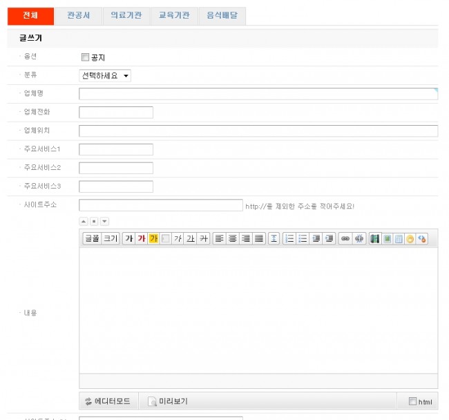 4. 주요제공서비스 필드 추가로 글쓰기에서 등록가능