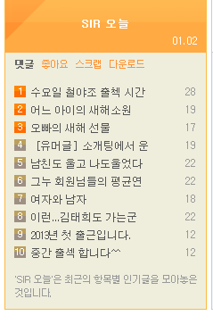 SIR 메인처럼 24시간 인기 게시물 통합 (캐쉬 활용 예제 마지막) 정보