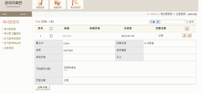 제가 앉혀놓고 어드민에서..클릭하니..아래와 같은..