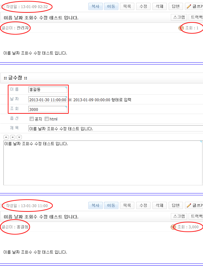 - 관리자만 [이름/날짜/조회수 수정]이 가능합니다.