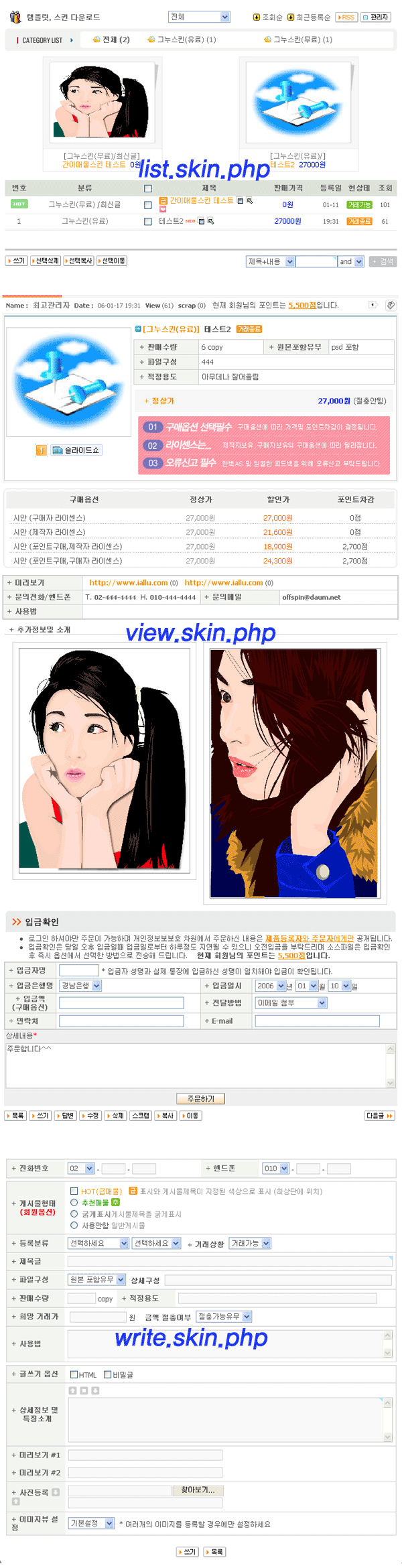 레이아웃 및 소스코드 95%를 위 스킨들에서 이식해왔습니다