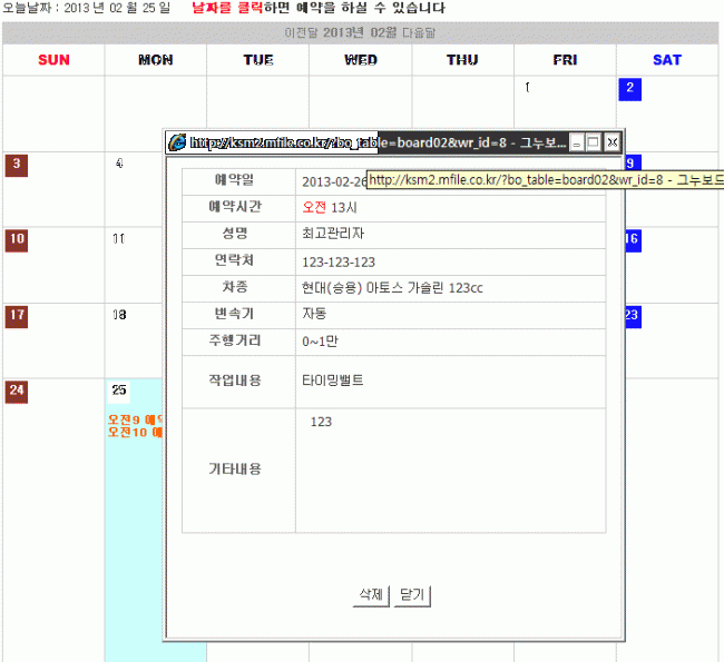 [SM] 달력형 정비예약 utf-8 버전 정보