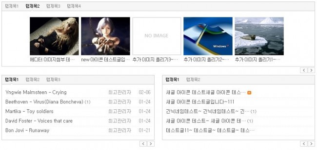 탭 최신글 두개 이상 출력 가능하고 최신글은 일반형과 갤러리형을 구분해서 출력 가능합니다.