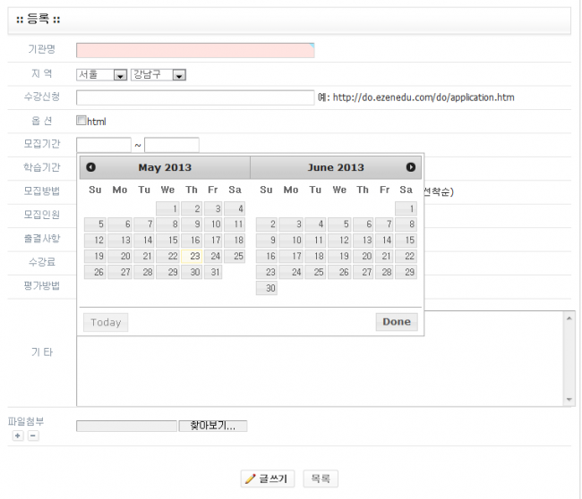 게시판 교육원 수강신청 받는 스킨 업데이트첨부파일