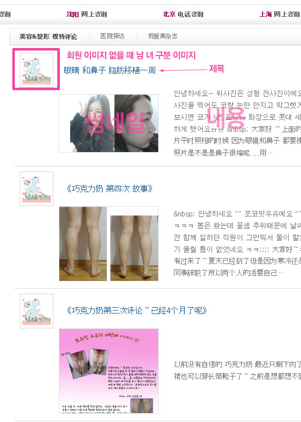 최신글 썸네일 + 회원이미지 + 제목 + 내용 이 나옵니다.