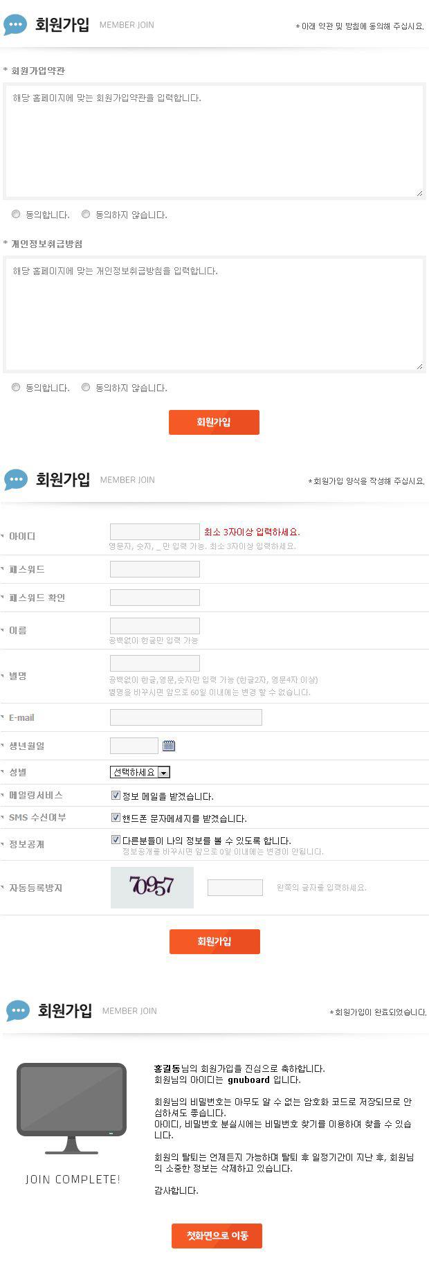 그누보드4 회원가입 기본소스에서 디자인만 변경한 스킨입니다.