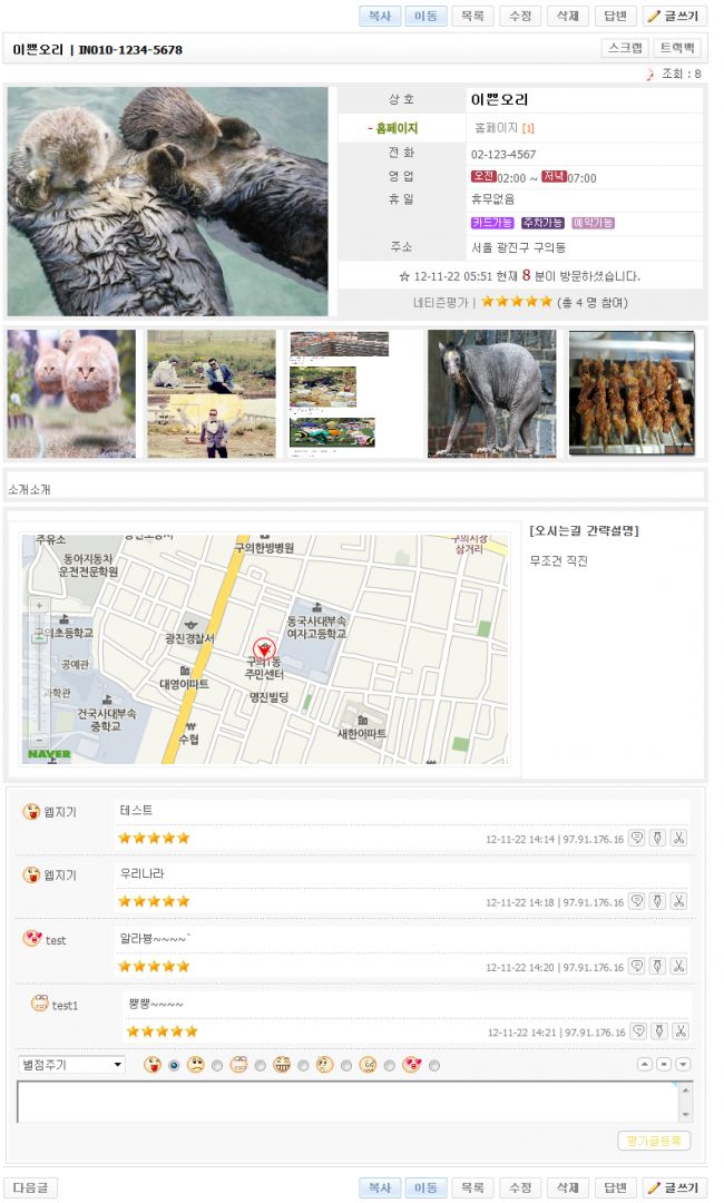 아파치님의 음식점 소개 게시판 스킨 - 네이버지도 연동 수정 하엿습니다. 정보