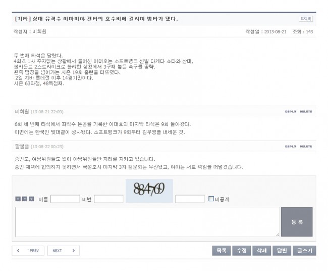 게시판에서 댓글을 달면 스크립트 오류가 뜨는데요.