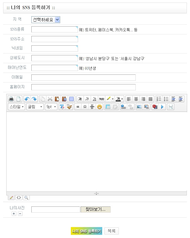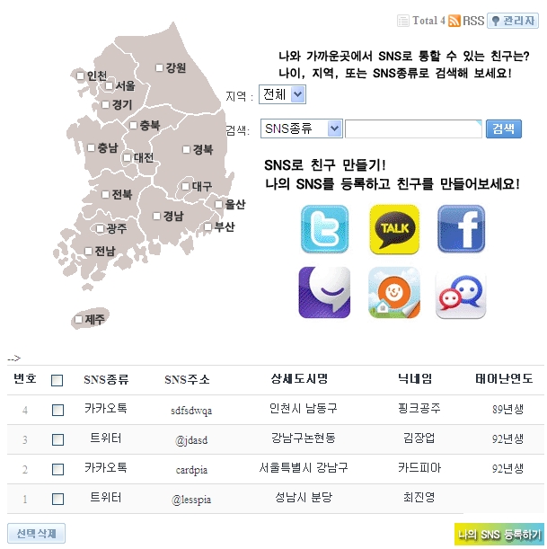 아주 간단히 만든 SNS친구만들기 게시판입니다.
