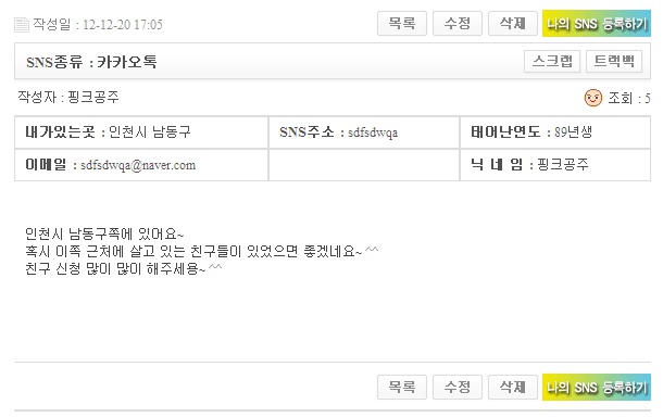 SNS 친구만들기 게시판[트위터,페이스북,카톡등 친구 등록] 정보