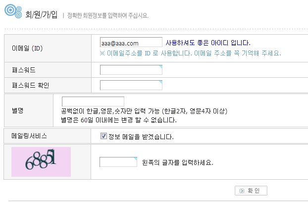 이메일(ID), 비밀번호, 별명 만으로 회원가입 (euc_kr) > 그누4 스킨