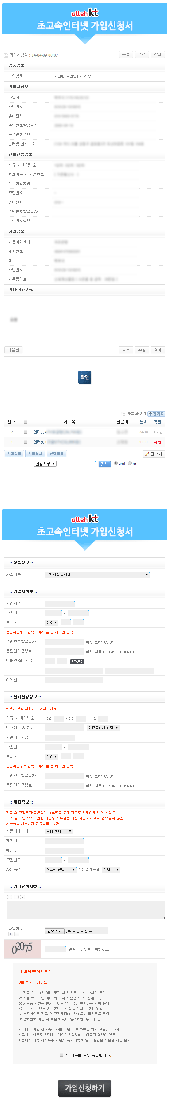 게시판 (초보용)인터넷가입신청서