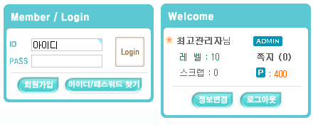 윗부분은 각이져있고 아래부분은 둥그스름해서 언바란스한 느낌이 강하게 오네요. ^^ 웰컴부분과 로그인 창 부분이 서로 맞닿을 수 있도록 디자인 하면 낫겠습니다.