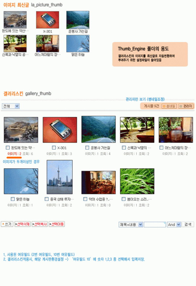 '썸네일 생성 이미지게시판'과 '이미지 최신글' 묶음 입니다.