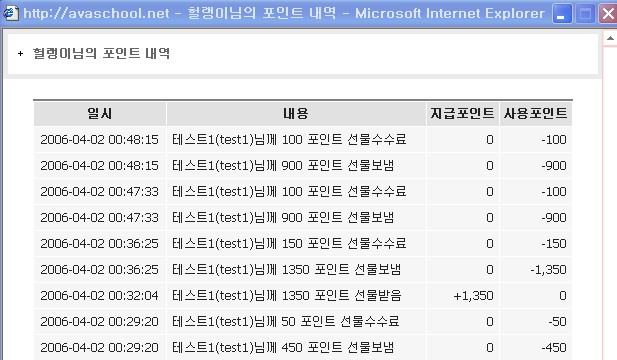 포인트선물하기+쪽지+수수료차감하기 입니다.