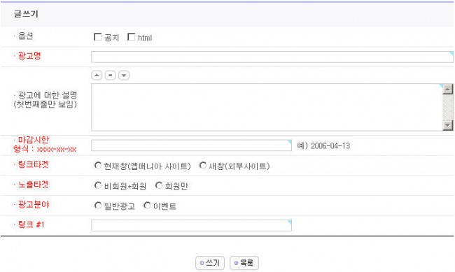 wr_link1 : 광고를 클릭했을 때 이동할 주소. 해당 광고를 몇번 클릭했는지 확인이 가능합니다.