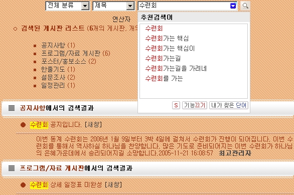 검색어 입력폼에서 커서키(상하좌우)로 이동시,