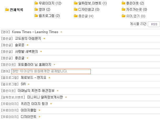 게시판 1전짜리 스킨 - 권한설정 즐겨찾기 링크