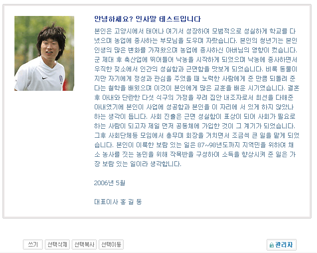 인사말 소개 페이지에 사용되는 게시판입니다.