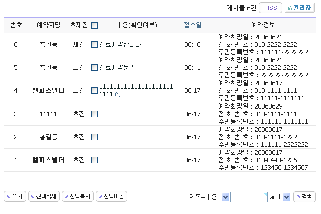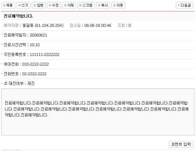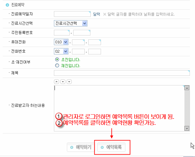 기본스킨을 수정하여 만든 진료예약스킨입니다.