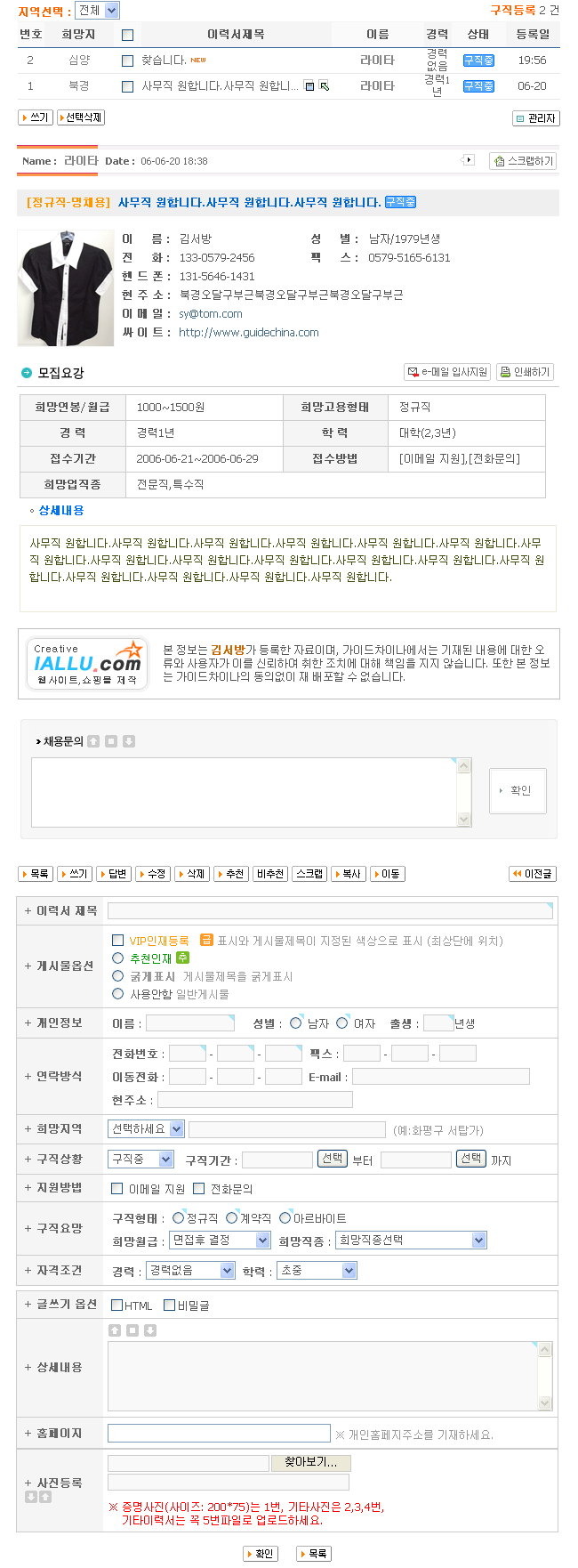 게시판 시그너스님의 구인스킨을 수정한 구직스킨첨부파일