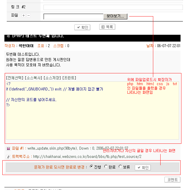 파일 확장자 중 php html htm css js txt 확장자를 올리면