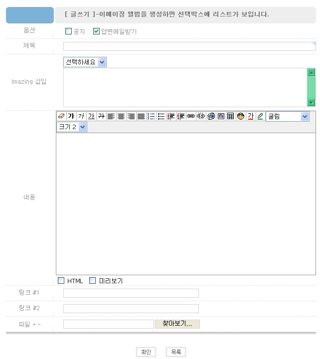 (스킨내의 write_update.skin.php 에서 이메이징게시판 이름을 입력해야함)