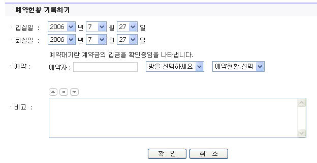 이 스킨은 고객이 예약을 하는 것이 아니라 숙박업체에서 입력을 하고 고객이 예약한 내용을 확인하는 스킨입니다.