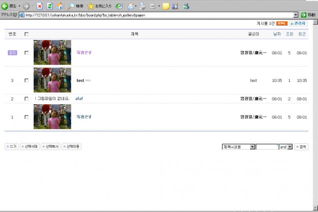 일단 제 홈피 쓸라고 기본게시판 화면에 그림 출력되도록