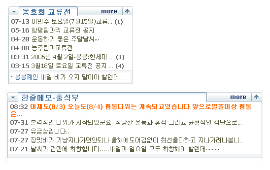 리스트에 제목만 나오는 일반 최신글 이며 마지막줄에 해당 게시판의