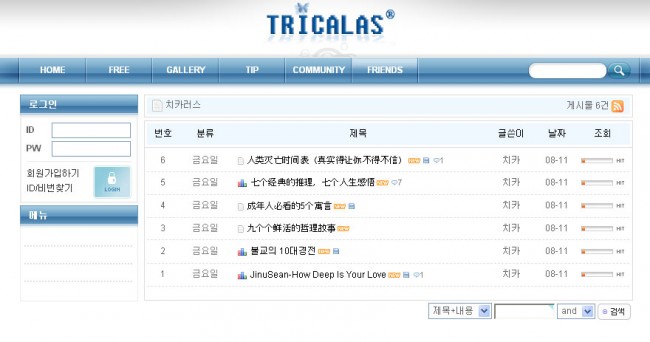 홈피용 커뮤니티 게시판을 만들었습니다.