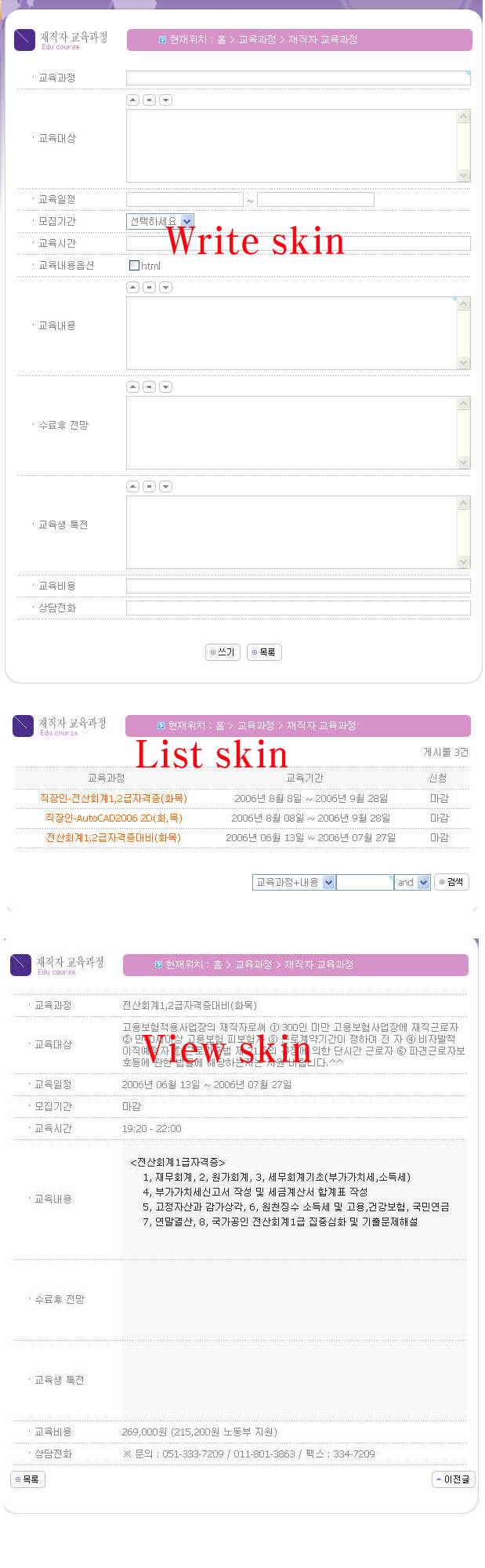 게시판 직업전문학교나 컴퓨터학원에서 사용할만한 스킨본문