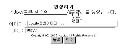 gb4/house/@아이디  생성 이네요-.- 하지만 한가지 문제점이 있습니다. 하우스 초기 생성시 @아이디 파일로 자동 생성 되는데.. 님 말대로 하면.. 해당 @아이디 파일을 수정 한단 야기 인가요??? 또 위 url 은 별 필요가 없을 듯 합니다. 회원님들이 하우스 기본 경로를 모르는 상태에서 아무 데서나 @아이디 파일을 생성 하실 경우... 접속이~~ 저 같으면 차라리 유알엘 부분을 자신의 주소 홈주소/gb4/house/식으로 자동 값을 입력 받은 후 사용자가 임의 수정 가능 하지 않게 하시는 편이.........글구 위 설명두 모자 라는 듯 하는데.. 자세한 설명즘...