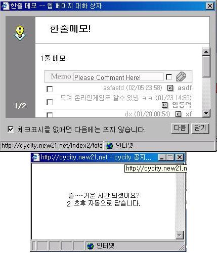 파일안에 hi는 3초후 자동으로 닫히며 1일동안 다시 뜨지않는 공지창이구요