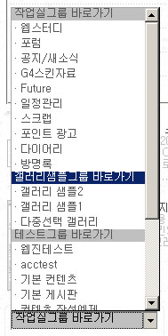 통합라이브러리를 사용하는 그룹 게시판 셀렉트박스 형태의 매뉴입니다.