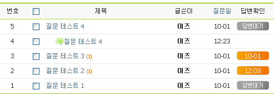PS : 스샷에서 답변글이 있는 게시물에 답변대기라고 표시가 되어 있는것을 보실 수 있습니다.