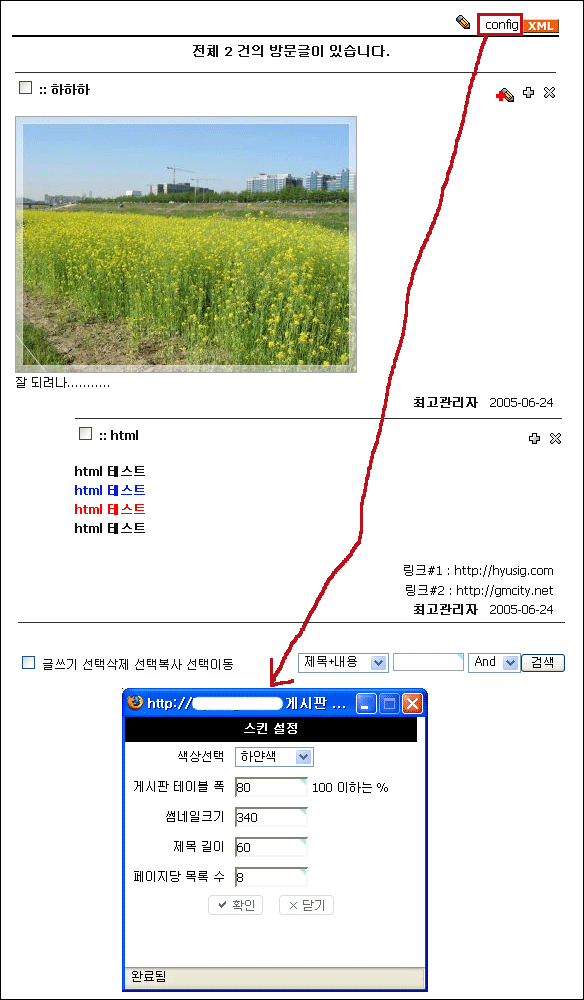 - 처음 적용시 관리자로 로그인 하신후 무조건 config를 한번 실행해 주시기 바랍니다.