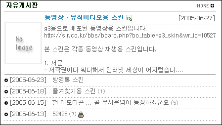 이 스킨은 상단에는 게시판 내용과 첨부이미지가 나오고 하단에는 리스트가 나옵니다.