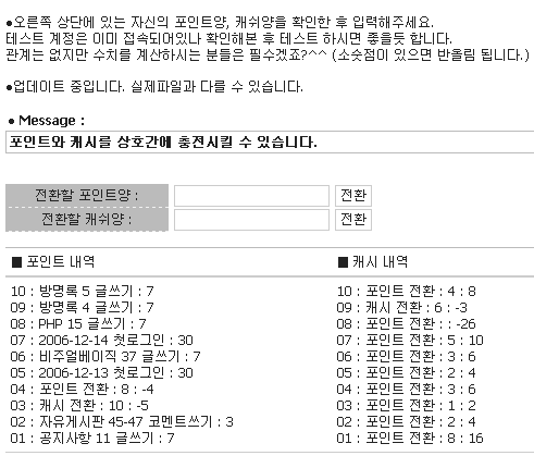 포인트, 캐시 전환 2006/12/16 euc-kr, utf-8 두가지 문자셋으로 분리 압축 저장 정보
