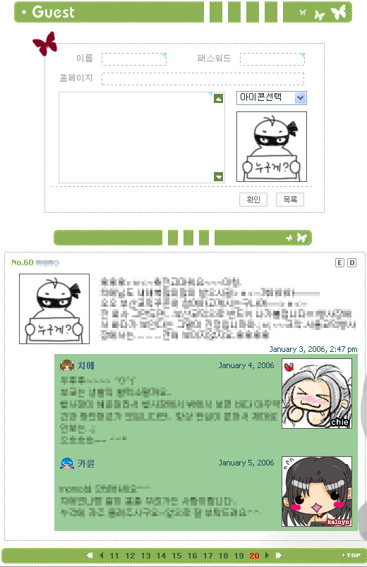 방명록 관리자 댓글시에도 다양한 아이콘선택 가능한 아이콘 방명록 [수정]