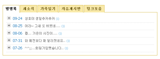 최근게시물 마우스오버시 이동하는 멀티탭 최근게시물(탭 개수를 자유롭게 설정 ^^)입니다.관련링크