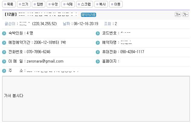 게시판 민박예약하기