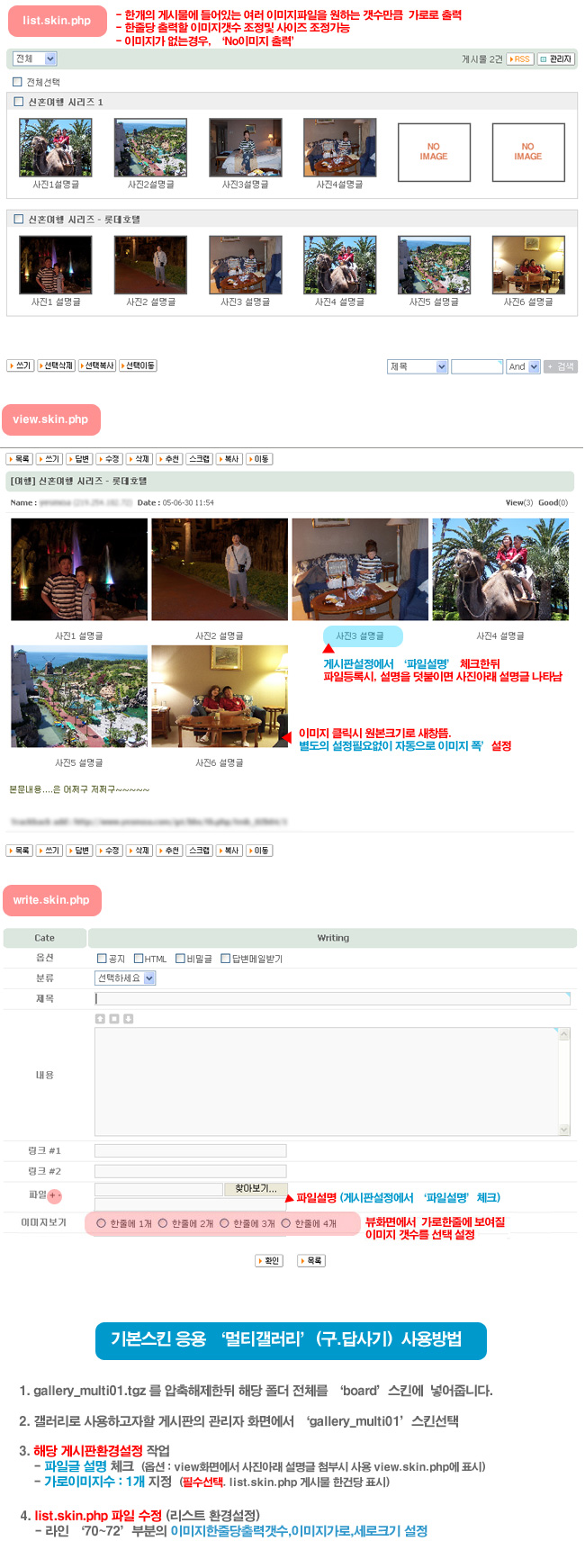내용은 보이는 바와 같이 '멀티 갤러리(구.답사기)' 스킨입니다.